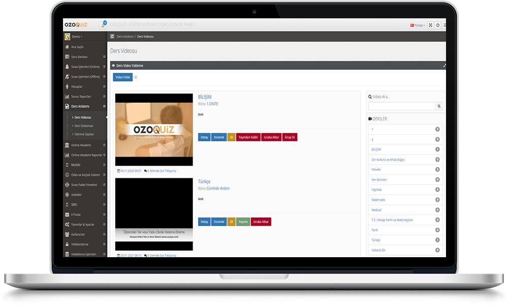 Ozoquiz online sınav programı ile katılımcı ve öğrencileriniz ile ister ders ve konu videolarını isterseniz ders ve konulara ait anlatım dökümanlarını paylaşarak öğrenmelerini kolaylaştıran bölümdür.