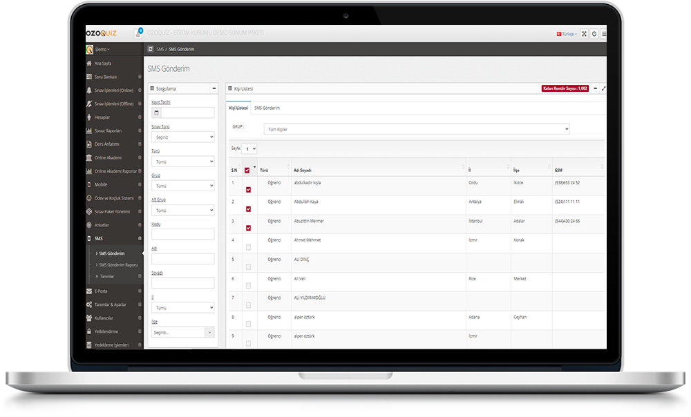SMS bilgilendirme modülü ile kurum veya şirketinize özel başlıklı sms gönderimleri yapmanıza olanak sağlar.